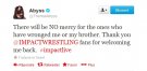 "Il n'y aura PAS de pitié pour ceux qui m'ont fait du tort ou en ont fait à mon frère. Merci aux fans d'Impact Wrestling pour m'avoir chaleureusement accueilli #impactlive"