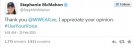 "Merci AJ Lee, j'apprécie votre opinion #UseYourVoice."