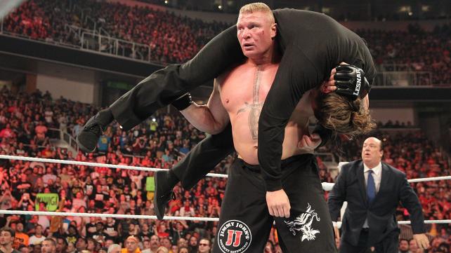 D'abord acceptée, sa requête a finalement été rejetée par Seth Rollins au tout dernier moment. Après que Rollins se soit enfui, Lesnar fou de rage a renversé la table des commentateurs sur JBL, Michael Cole et Booker T. Il a ensuite attrapé Cole pour aller lui infliger un F-5 dans le ring puis il a infligé deux F-5 à un caméraman.