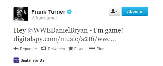 Dans une interview avec Digital Spy, Daniel Bryan a avoué qu'il aimerait collaborer avec le chanteur Frank Turner: