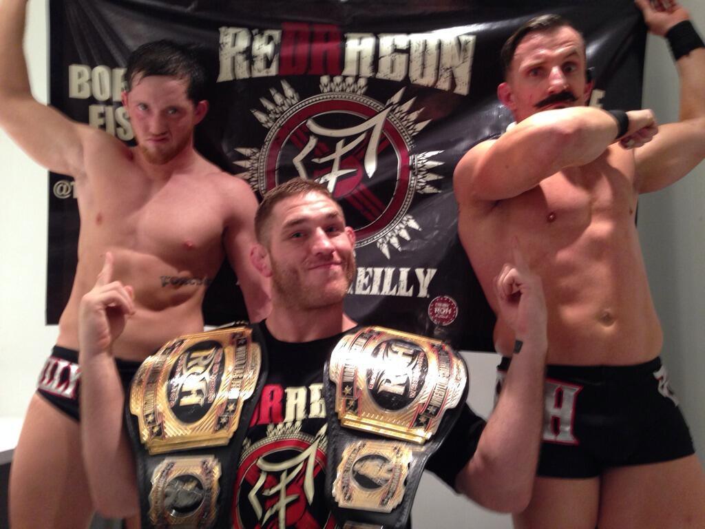Ci-dessous une photo des nouveaux champions aux côtés du combattant de l'UFC Tom Lawlor, qui était présent aux abords du ring durant le match: