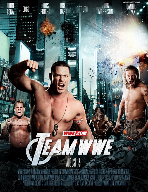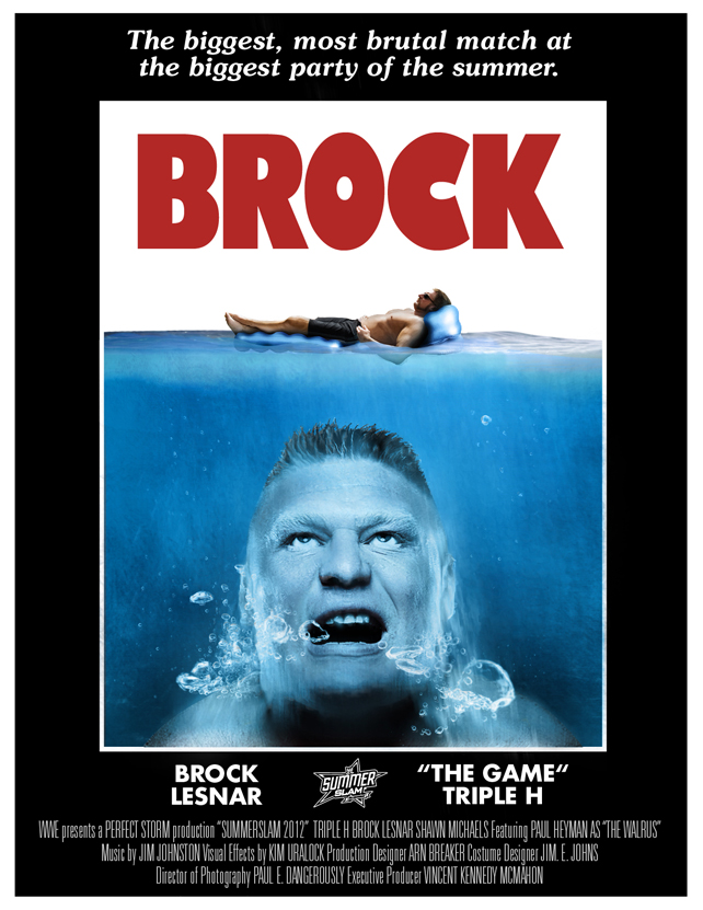 La WWE a publié un article sur son site où elle reprend des affiches de films célèbres pour mettre en avant certains matchs. Vous pouvez donc voir ci-dessous des affiches inspirés de films comme Les Dents de la mer, Jurrasic Park ou The Avengers pour mettre dans la lumière les matchs estivaux suivants: Vader vs Bret Hart à Summerslam 1996, Team WWE vs The Nexus à Summerslam 2010, John Cena vs CM Punk à Money in the Bank 2011, John Cena vs Big Show à No Way Out 2012 et Brock Lesnar vs Triple H à Summerslam 2012.