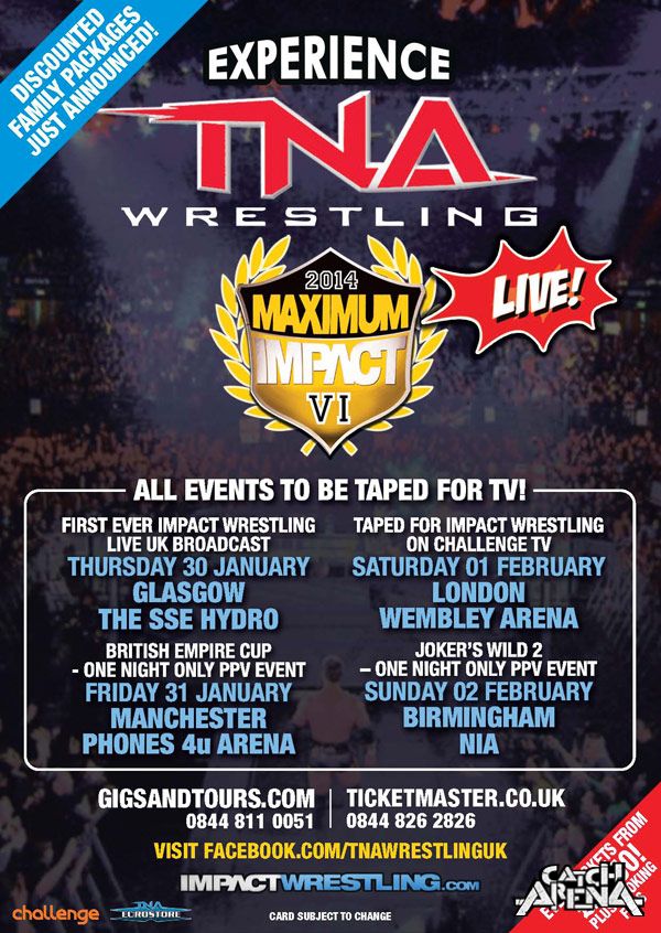 Alors que la fédération a récemment annoncé le retour des enregistrements d'Impact Wrestling à Orlando, la fédération vient d'indiquer sur son site et sur les réseaux sociaux la tenue de deux pay-per-views lors de sa tournée britannique de 2014.