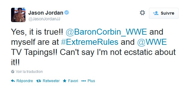 “Oui, c'est vrai !! Baron Corbin et moi-même serons à Extreme Rules et aux enregistrements télé !! Je ne peux pas dire que je ne suis pas enthousiaste à ce sujet !!”