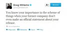 L'ancien champion télé, X-Division et par équipe de la TNA Douglas Williams a réagi avec agacement à l'annonce du départ de Matt Morgan sur le site de la TNA. De quoi énerver l'anglais puisque Morgan a été le seul à faire l'objet de ce genre de traitement, contrairement aux autres lutteurs qui ont récemment quitté la fédération d'Orlando.