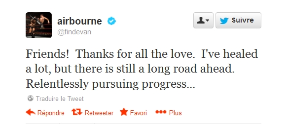 Evan Bourne a tweeté à propos de son retour dans les rings de la WWE lors lors d'un house show de NXT ce jeudi:
