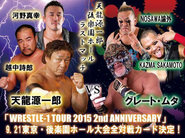 La WRESTLE-1 a annoncé que le Hall of Famer de la WWE Genichiro Tenryu, qui prendra sa retraite des rings en novembre, combattra le 21 septembre prochain à l'occasion du show qui se déroulera au Korakuen Hall de Tokyo.