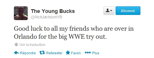 "Bonne chance à tous mes amis qui se rendent à Orlando pour un gros try-out avec la WWE."