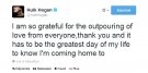 "Je suis si reconnaissant envers ce déversement d'amour de chacun d'entre vous, merci, cela devrait être le plus grand jour de ma vie de savoir que je rentre à la maison"