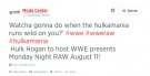 "Qu'allez-vous faire lorsque la Hulkamania va déferler sur vous ? #wwe #wweraw #hulkamania Hulk Hogan sera l'invité de la WWE à Monday Night RAW le 11 août!"