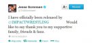 "J'ai été licencié par la TNA. Je voudrais remercier ma famille qui m'a soutenu, mes amis et mes fans."