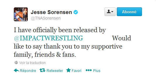La TNA a licencié Jesse Sorensen. C'est le catcheur en personne qui nous en informe à travers son compte Twitter: