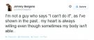 "Je ne suis pas le genre de mec à dire: "je ne peux pas le fairet", comme j'ai pu le montrer par le passé... Mon coeur eut toujours prêt à combattre mais parfois mon corps n'en est pas capable..."