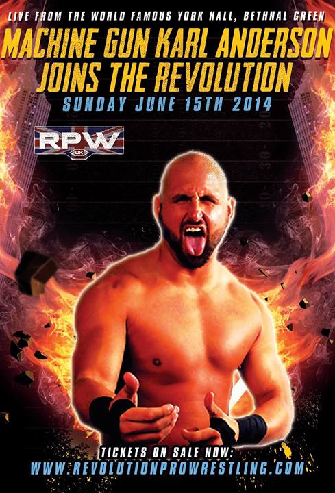 La Revolution Pro Wrestling a révélé ce matin que Karl Anderson, catcheur à la NJPW et membre du clan Bullet Club, sera présent pour le show Summerslizzer qui se tiendra le 15 juin au York Hall de Londres.