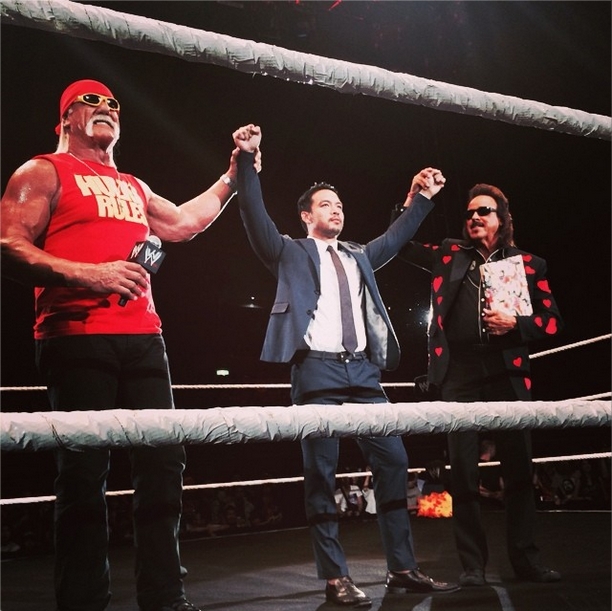 Ce midi lors du dernier house show de la tournée japonaise de la WWE qui se déroulait à Osaka, la star japonaise KENTA a signé son contrat en compagnie d'Hulk Hogan et de Jimmy Hart.