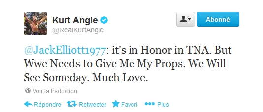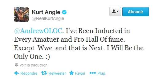 Kurt Angle a réagi à sa future intronisation au Hall of Fame de la TNA via Twitter. Ci-dessous ses tweets: