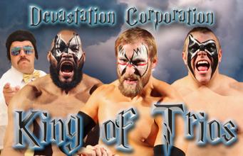 Il s'agit du trio de la Devastation Corp, composé de Blaster Mcmassive, Max Smashmaster et Flex Rumblecrunch. Ce sont les vainqueurs du King Of Trios de l'année dernière et Blaster Macmassive et Max Smashmaster sont les actuels champions par équipe de la Chikara.