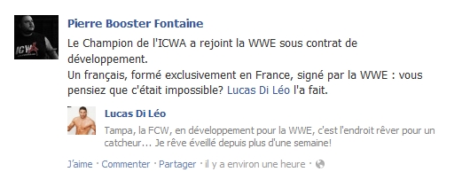 Une bonne nouvelle n'arrive jamais seule. Après l'annonce de la signature de Tom La Ruffa à la WWE, un autre français signe à la fédération de Stamford.