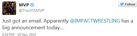"Je viens de recevoir l'email. Apparemment @ImpactWrestling a une grosse annonce aujourd'hui..."