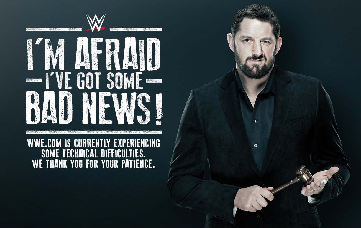 Le site officiel de la WWE, WWE.com, connaît en ce moment même des problèmes techniques qui le rend inaccessible pour les fans du monde entier. Afin de faire patienter les gens, la fédération de Stamford a choisi l'humour avec un petit message signé Bad News Barrett sur l'image suivante: