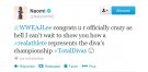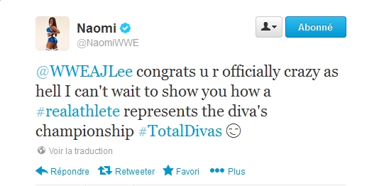 "Félicitations tu es officiellement plus folle que jamais, je suis impatiente de te montrer comment une vrai athlète représente le titre des Divas #TotalDivas"