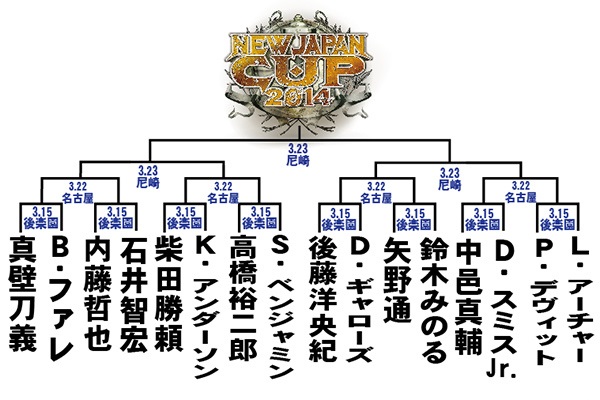 La New Japan a annoncé que seize hommes seront en compétition dans l'édition 2014 de la New Japan Cup. Le vainqueur obtiendra un match de championnat pour le titre IWGP de son choix, que ce soit le titre poids-lourd ou le titre intercontinental au show du 6 avril.