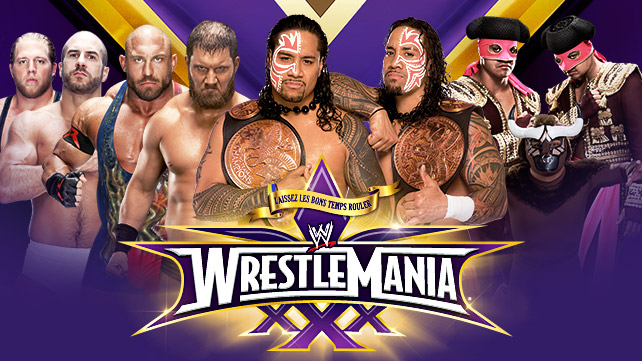 Les titres par équipe de la WWE s'étaient déjà disputés en pré-show il y a deux ans à WrestleMania XXVIII et les Usos ainsi que Los Matadores qui s'appelaient à l'époque Primo et Epico avaient participé au match.