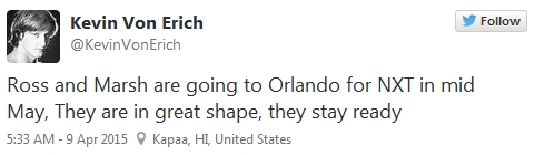 "Ross et Marsh iront à Orlando pour NXT à la mi-Mai. Ils sont en grande forme, ils restent prêts."
