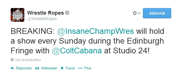 "INFO DE DERNIERE MINUTE: l'ICW tiendra un show durant chaque dimanche du Edinburgh Fringe avec Colt Cabana au Studio 24 !"