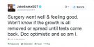 "L'opération s'est bien déroulée et je me sens bien déroulée. Je ne sais pas si la grosseur est complètement retirée jusqu'à ce que les résultats des tests soient revenus. Les médecins sont optimistes donc je le suis."