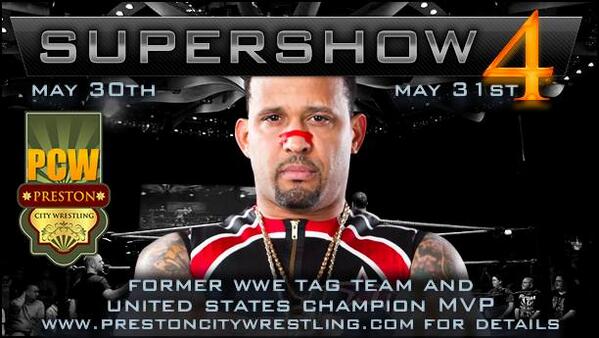 La fédération anglaise Preston City Wrestling a annoncé la présence de MVP au week end Supershow 4 composé de trois shows les 30 et 31 mai à Preston en Angleterre.