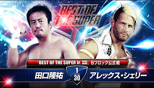 Match du Block B du tournoi Best of the Super Junior XXI: Alex Shelley a battu par tombé Ryusuke Taguchi.