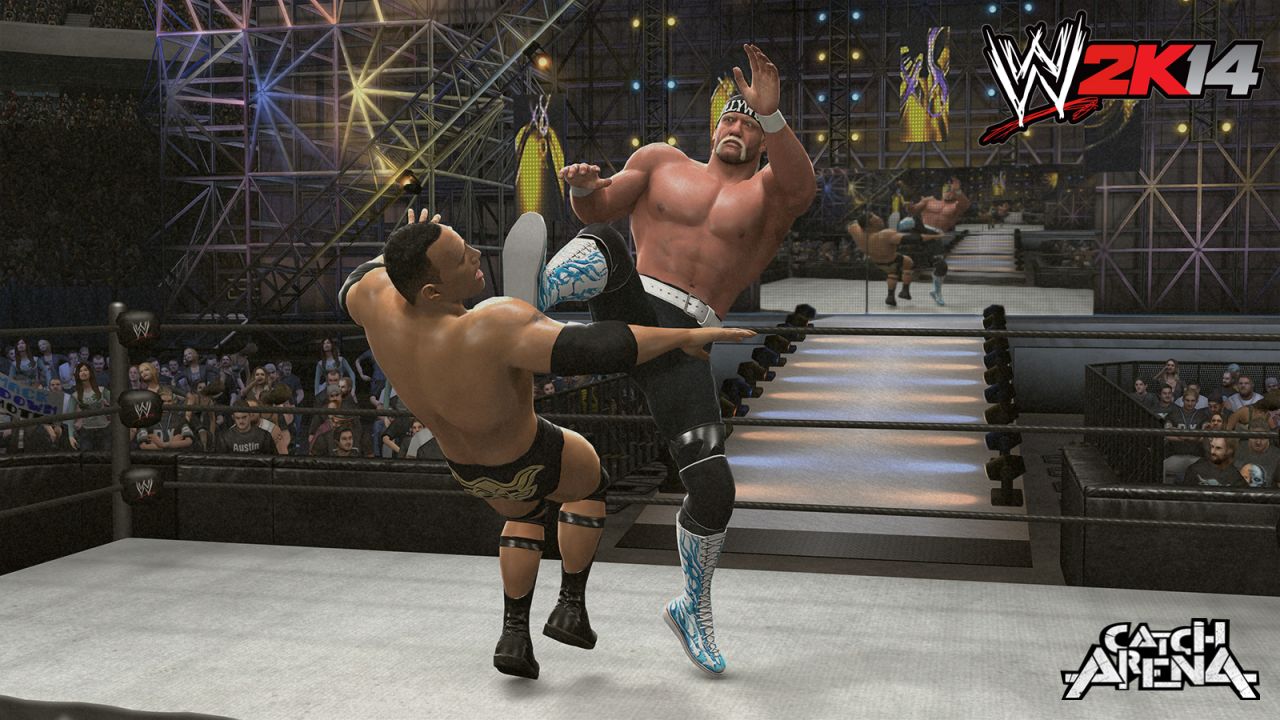 Si vous avez joué à WWE 13, vous ne serez pas dépaysé tant la ressemblance est proche. En effet, en ce qui concerne l'aspect purement visuel, bien que les animations aient subies quelques améliorations, la différence de qualité entre les catcheurs et le public est toujours aussi marquée. Les catcheurs, même s'ils ne sont pas tous parfaitement fidèles à la réalité, sont très bien modélisés et bénéficient de graphismes très fins et détaillés. En ce qui concerne le public par contre, le rendu est toujours aussi laid, avec des personnages très carrés et grossiers, dignes de l'époque PlayStation 2... Ce qui passe de plus en plus mal chaque année... Mais 2K ayant tout juste reprit la licence suite à la fermeture de THQ, il leur était difficile d'effectuer des changements en profondeur en si peu de temps (on rêve d'un WWE 2K14 avec le moteur graphique next-gen de NBA 2K14 !). L'ambiance sonore quant à elle reste toujours au même niveau, donc de bonne facture.