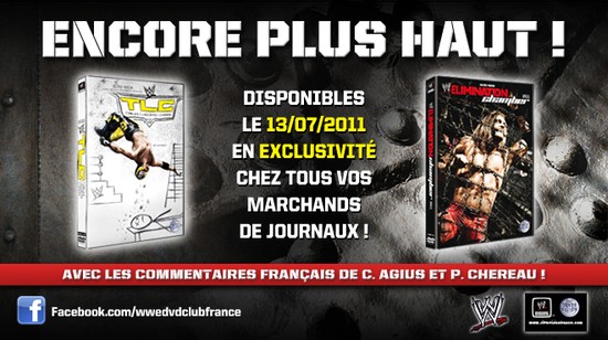 Les premiers DVD, sortis le 13 juillet dernier uniquement chez les marchands de journaux, vous proposent de retrouver deux PPV, TLC 2010 et Elimination Chamber 2011, afin d'étancher votre soif de catch durant vos vacances.