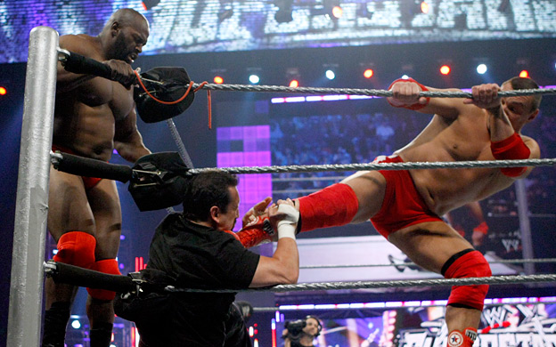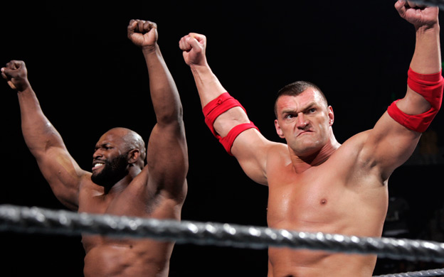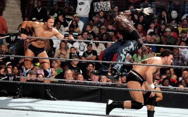 Victoire de Drew McIntyre et Eric Escobar grâce à un Double Underhook DDT exécuté sur Matt Hardy.