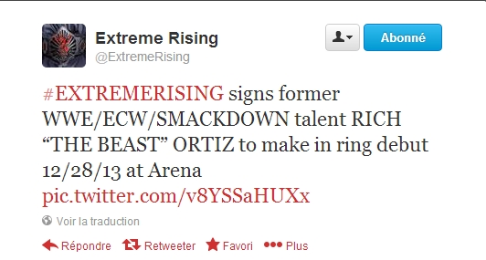 "L'Extreme Rising signe l'ancien catcheur de la WWE Rich “The Beast” Ortiz qui fera ses débuts le 28 décembre 2013 à l'ECW Arena"