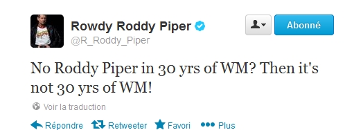 "Pas de Roddy Piper en 30 ans de Wrestlemania ? Alors les 30 années de Wrestlemania n'existent pas !"