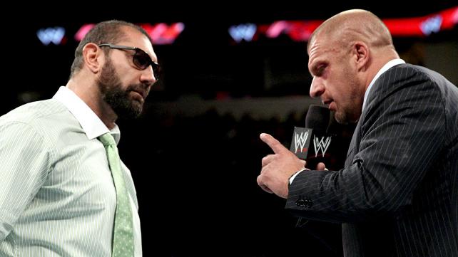 Quatre jours après le départ de l'Animal de la WWE, la WWE a posté sur sa page Facebook une photo où Santino Marella s'amuse à imiter l'ancien champion du monde. Ci-dessous la photo de l'italien avec en comparaison une photo de Batista:
