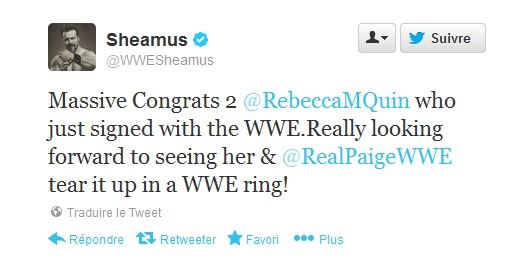 Sheamus a commenté via Twitter l'arrivée de l'irlandaise Rebecca Knox à la WWE: