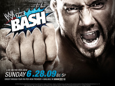 Alors qu'il est de tradition aux USA de voir le show "The Great American Bash", voici que la WWE annonce aujourd'hui que celui-ci change de nom. En effet, nous apprenons que l'édition 2009 se nommera simplement The Bash et se déroulera le dimanche 28 juin 2009 à Sacramento. Une chose est sûre, c'est que Batista, qui a été choisi pour l'affiche promotionnelle du show ne sera pas présent sur le ring suite a sa .
