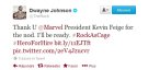 "Merci au président des studios Marvel Kevin Feige pour avoir donné son accord. Je serai prêt #RockAsCage #HeroForHire,"