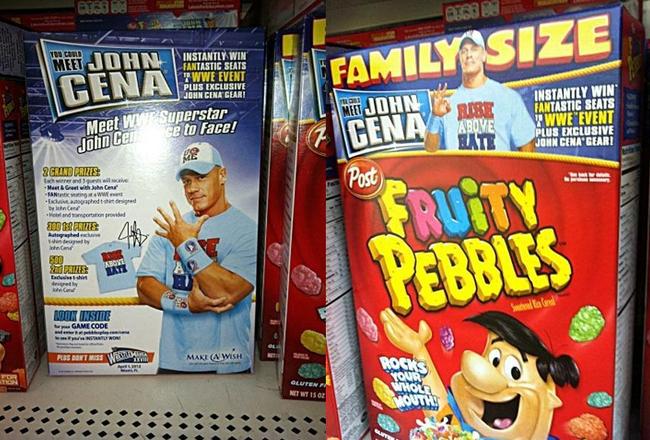 - ESPN.com a écrit un article sur John Cena, qui travaille depuis quelques temps avec Post Cereals pour apparaître sur les boites de céréales Fruity Pebbles. Cena est cité dans l'article:
