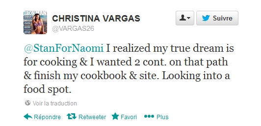 "J'ai réalisé que mon rêve qui était en réalité de faire une carrière dans la cuisine et je veux continuer dans cette voie et terminer mon livre de cuisine et mon site."